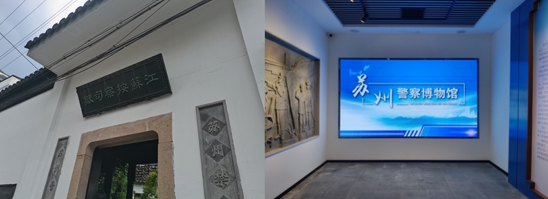 图为:苏州警察博物馆正门和展馆大厅