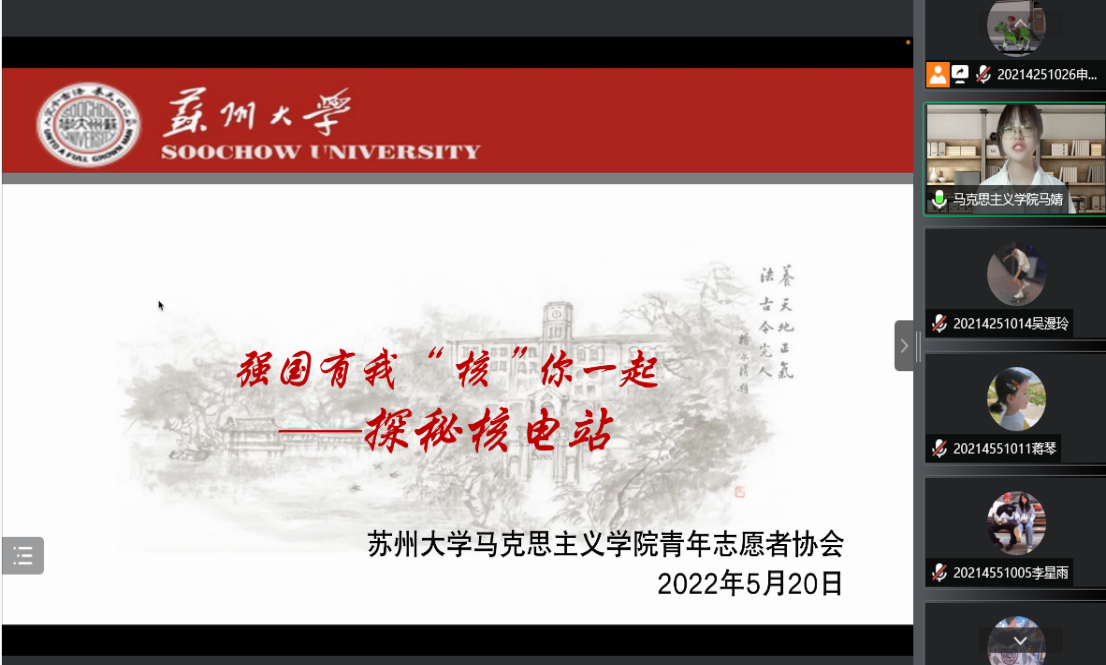 5月20日,91自拍 青年志愿者协会宣讲团顺利举办“探秘核电站”主题宣讲活动。本次宣讲活动由91自拍 青年志愿者协会主办,研究生第四党支部、2021级专硕班团支部、2020级专硕班团支部承办。活动由2021级硕士研究生马婧主持。