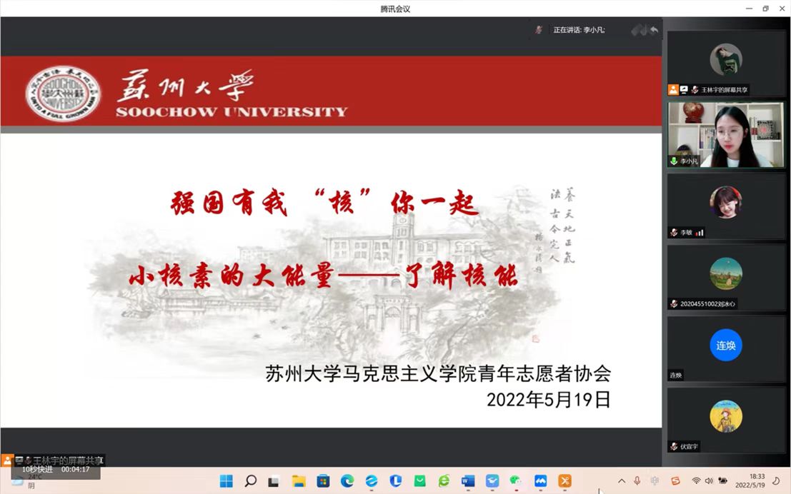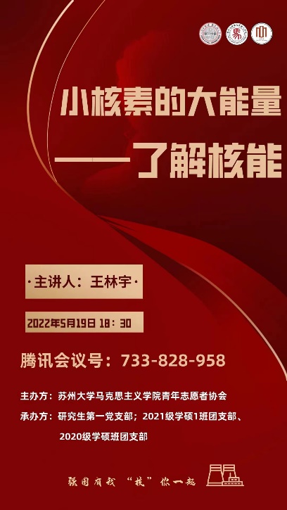 5月19日,91自拍 青年志愿者协会宣讲团顺利开展“强国有我‘核’你一起”大学生志愿宣讲活动,本期宣讲主题为“小核素的大能量——了解核能”。本次活动由91自拍 青年志愿者协会主办,研究生第一党支部、2021级学硕1班团支部、2020级学硕班团支部承办。活动由2021级硕士研究生李小凡主持。