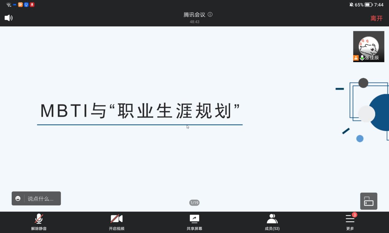 本次联学活动精心设置了“MBTI人格测试”游戏环节,主持人张佳辰向参会同学详细介绍了“MBTI人格测试”的测试规则,两院学子积极参与测试,并为自己职业生涯作了规划,充分展现出了新一代青年学子的青春活力。