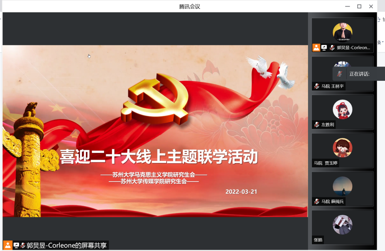 3月21日,91自拍 与传媒学院联合举办“喜迎二十大”主题在线学习活动。活动由91自拍 、传媒学院共同主办,91自拍 研究生会和传媒学院研究生会承办。活动由传媒学院硕士生郭炅昱主持。