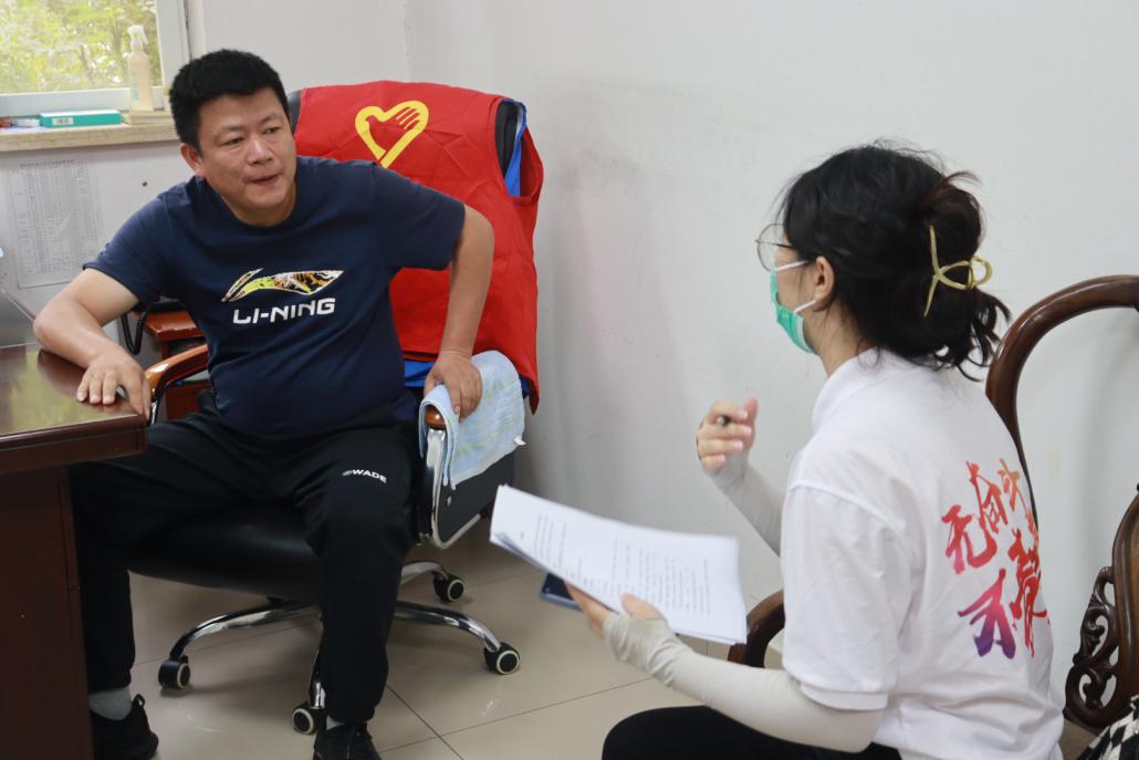 图为实践团成员采访当地村委干部了解农家书屋数字化建设的发展